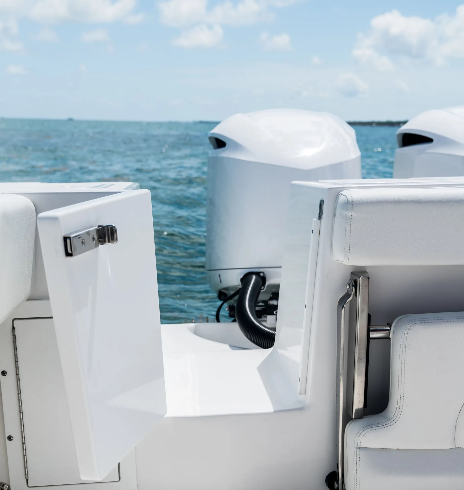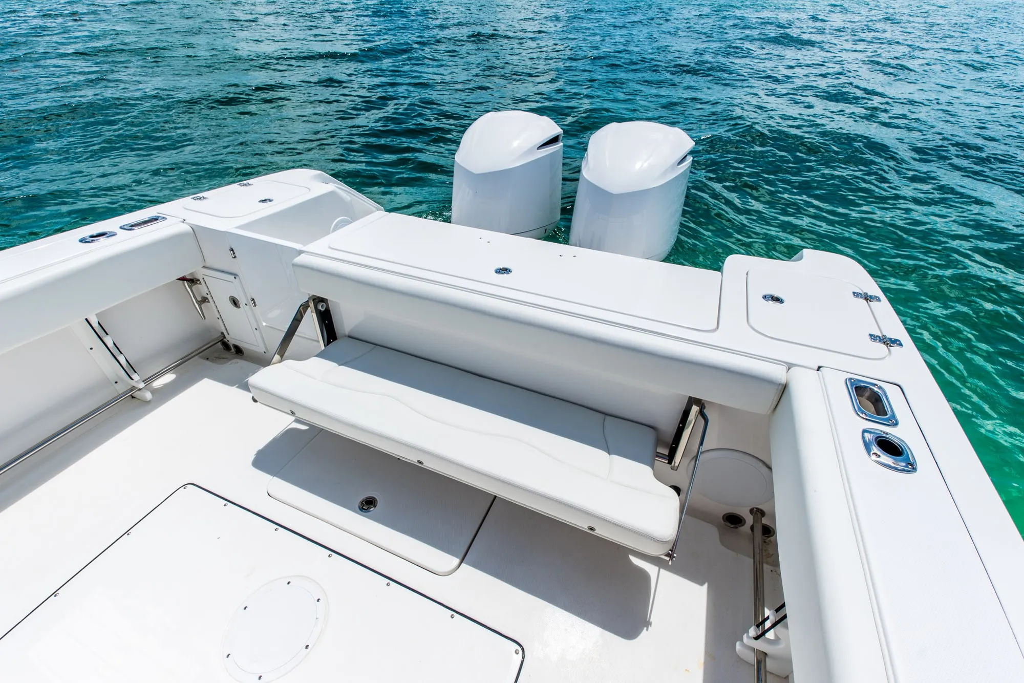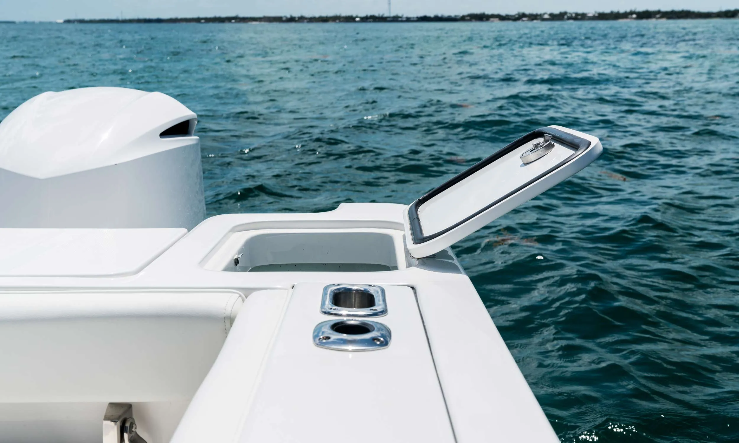 The 325CC's deep-V hull design with a Carolina flare delivers unparalleled stability and a remarkably smooth ride, even in the sometimes challenging waters of the Arabian Gulf. Enjoy the confidence and comfort that only an EdgeWater can provide, allowing you to explore further and stay out longer.